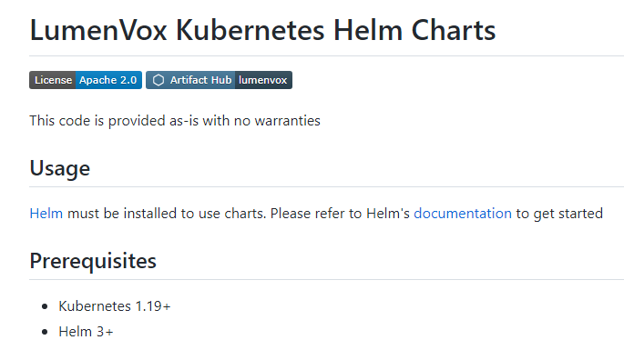- The various helm charts required can be located at https://github.com/lumenvox/helm-charts